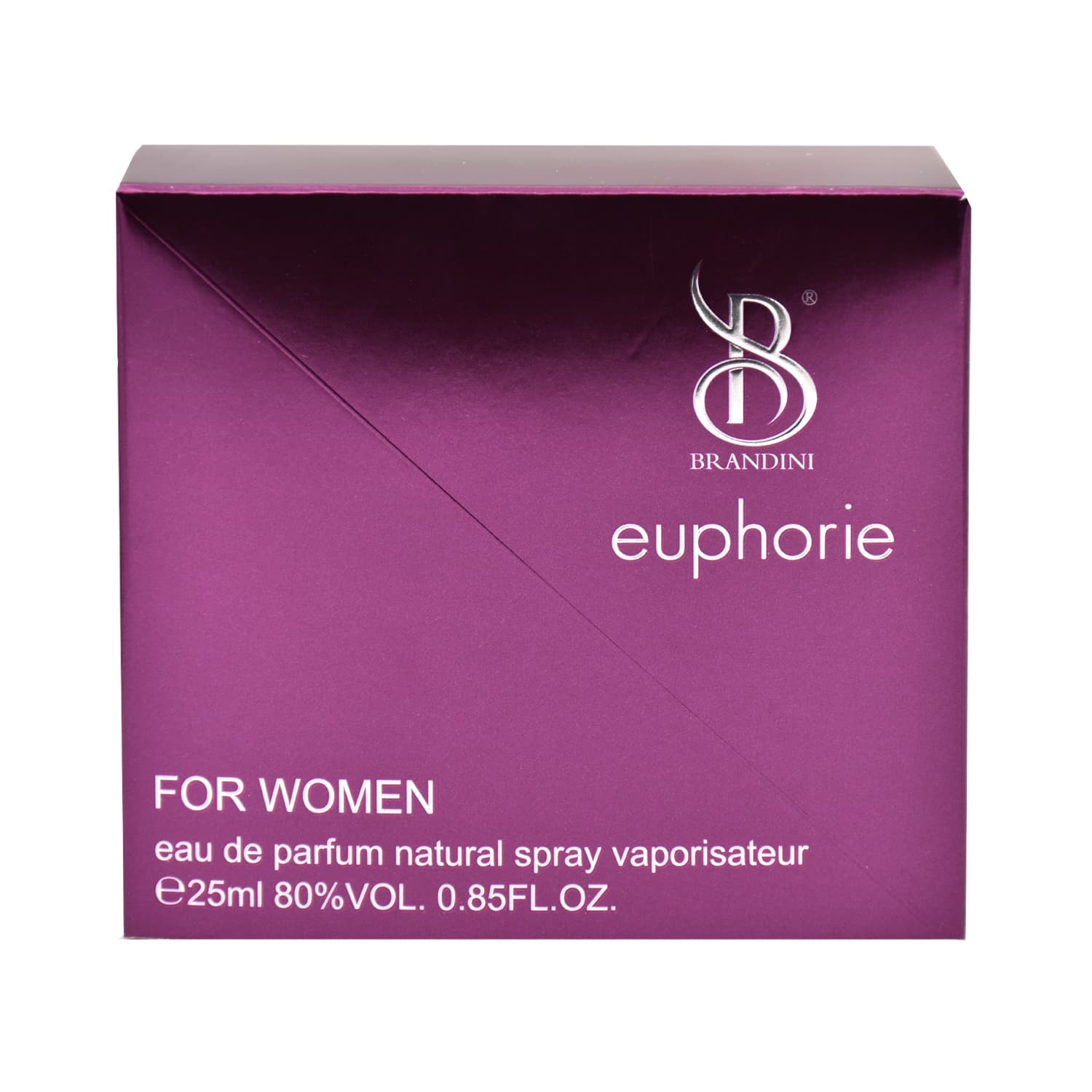ادکلن Euphorie Brandini حجم 33 میل عطری زنانه با رایحه‌ای شیرین و گلی است. ترکیب گل یاس، رز و وانیل، عطری ماندگار و اغواگر برای بانوان شیک‌پوش ایجاد می‌کند.