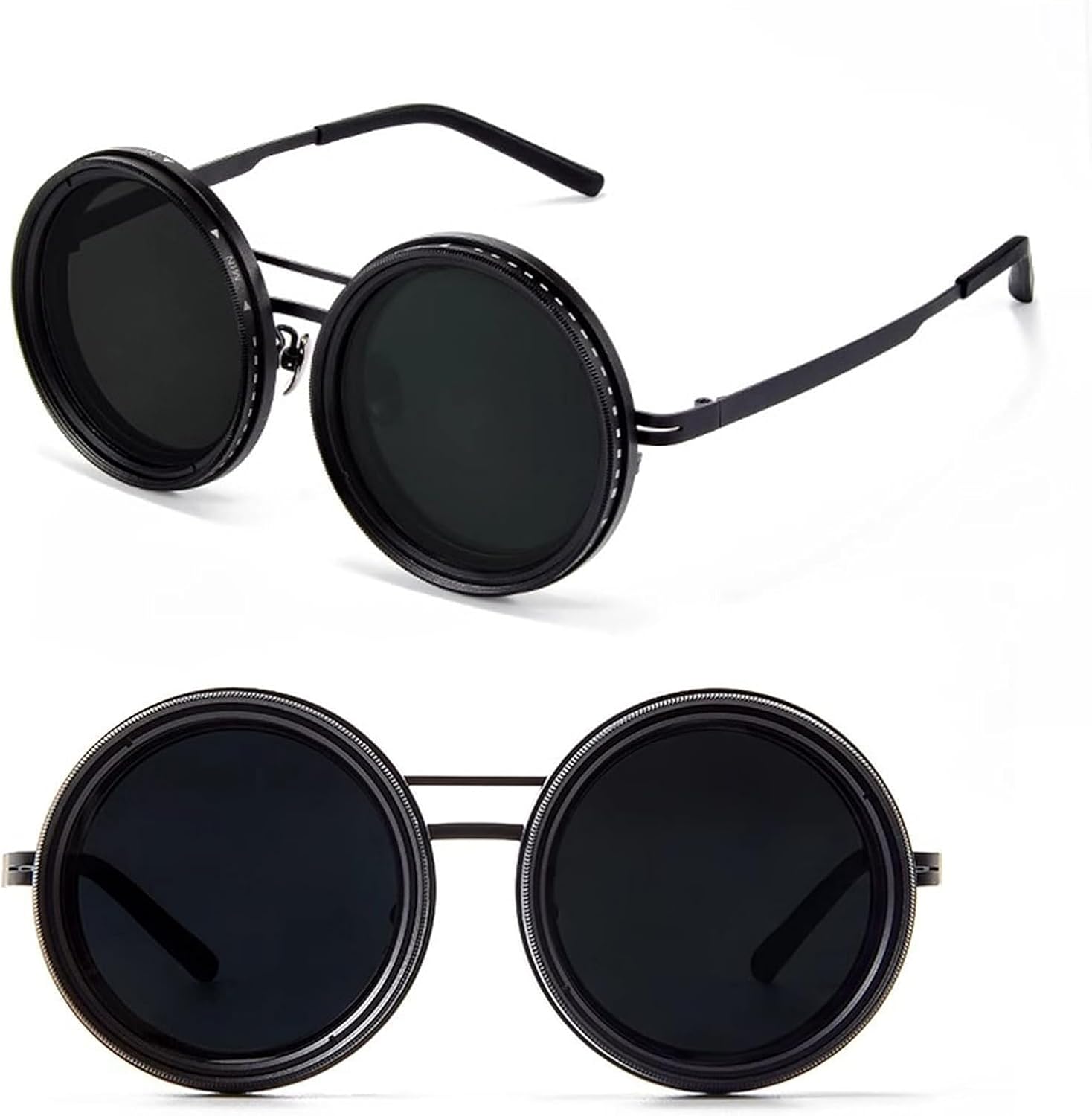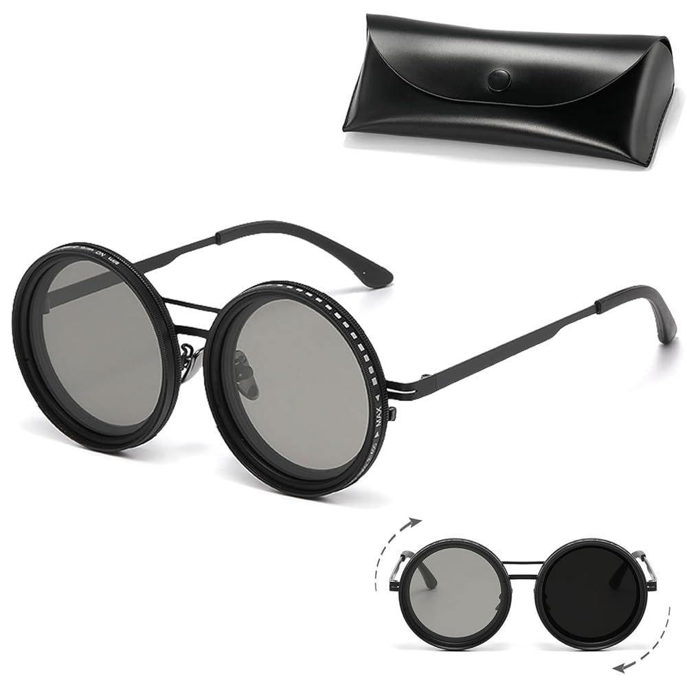 عینک پلاریزه چرخشی با لنز تریوکسه، فریم گرد مشکی و قابلیت تنظیم نور، انتخاب حرفهای برای رانندگی و فعالیتهای فضای باز است.