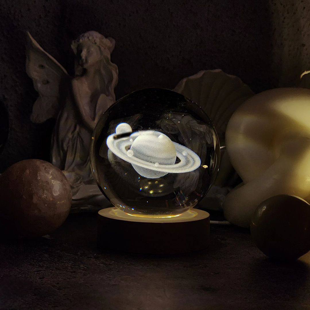 سطح صاف و شفاف کریستال در کنار حلقه زحل، زیبایی خاصی به این گوی میدهد و در زیر نور طبیعی یا نورپردازی اتاق، بازتابی جادویی و خیرهکننده ایجاد میکند.
